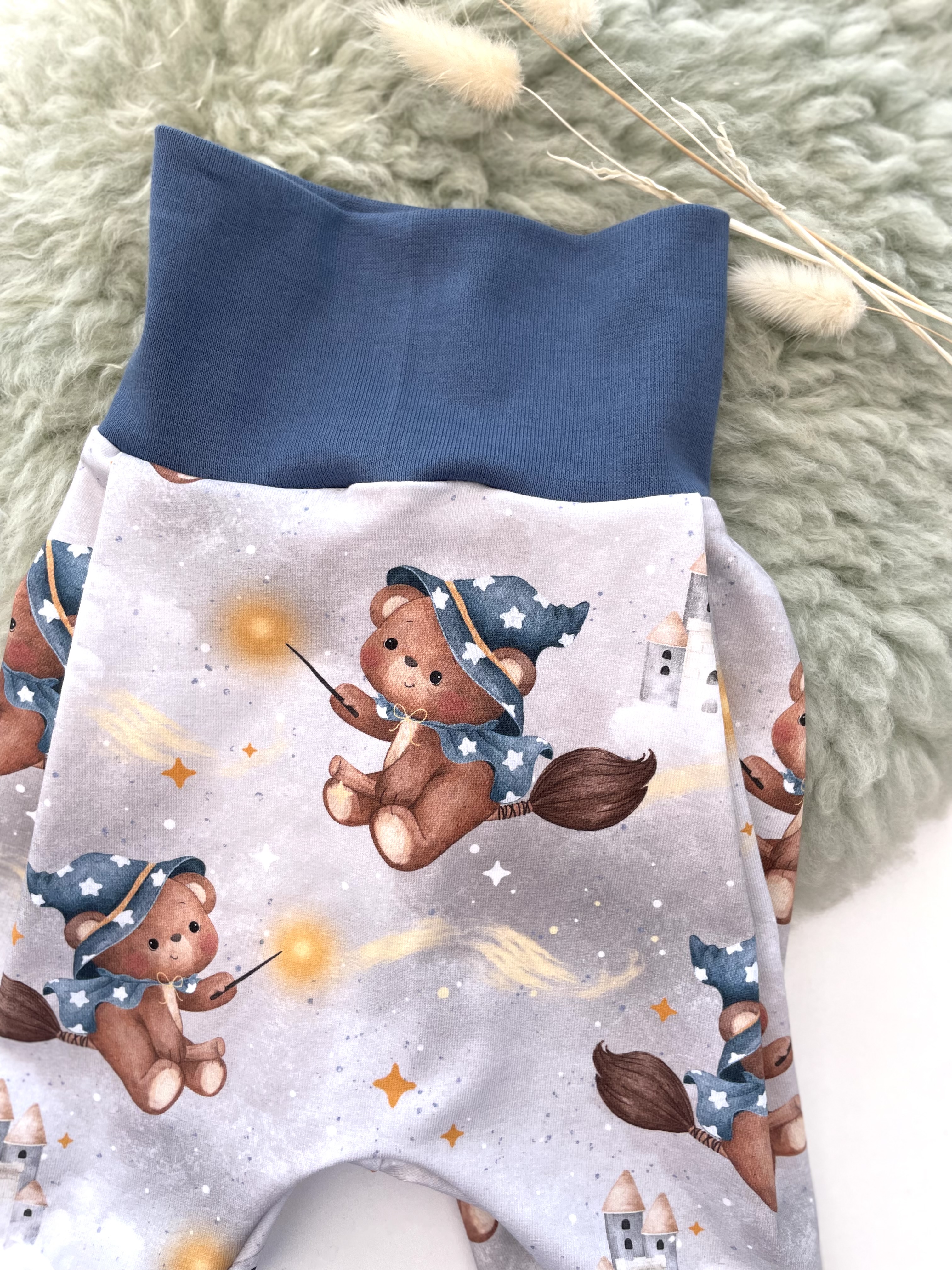 Die mitwachsende Pumphose ist sehr angenehm zu tragen. Durch das elastische Bündchen drückt den Babys und Kleinkindern nichts ein.